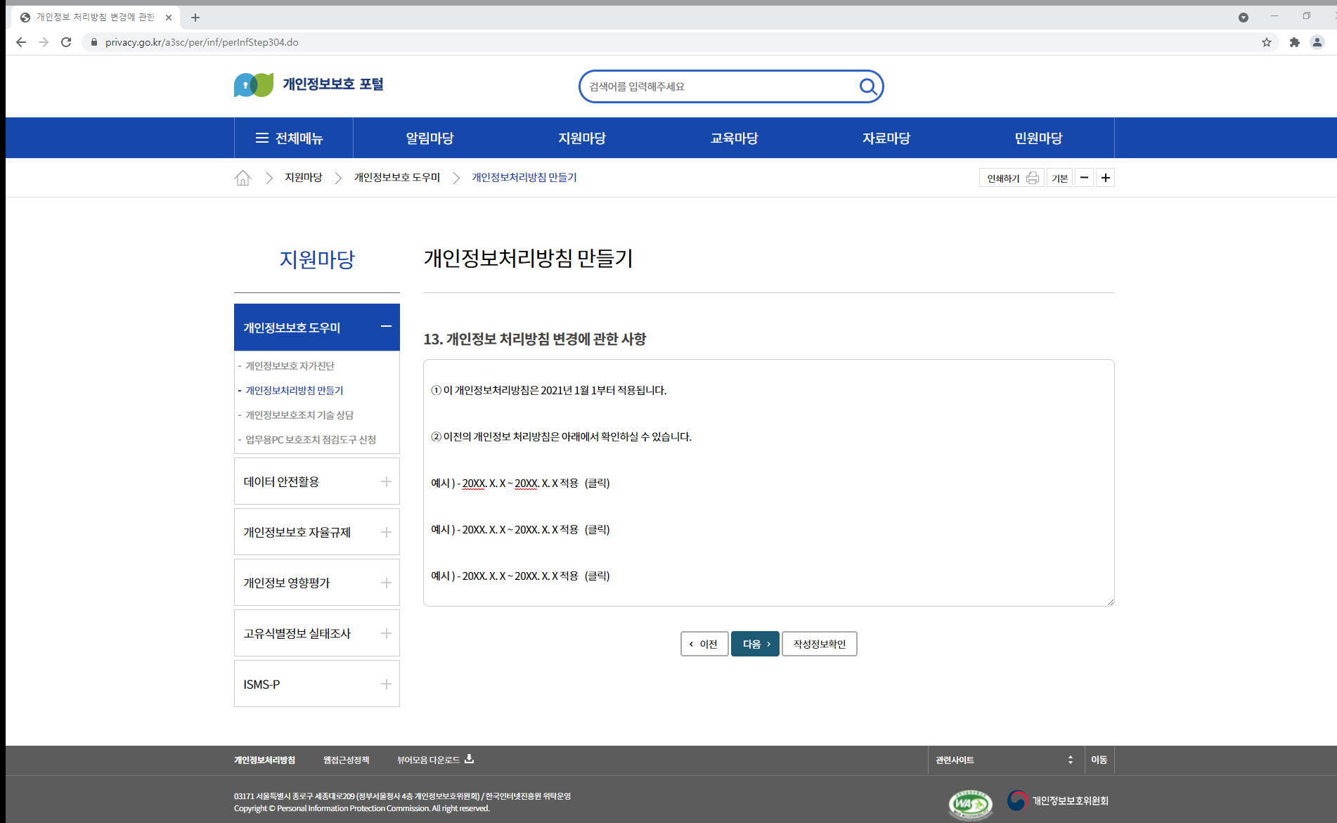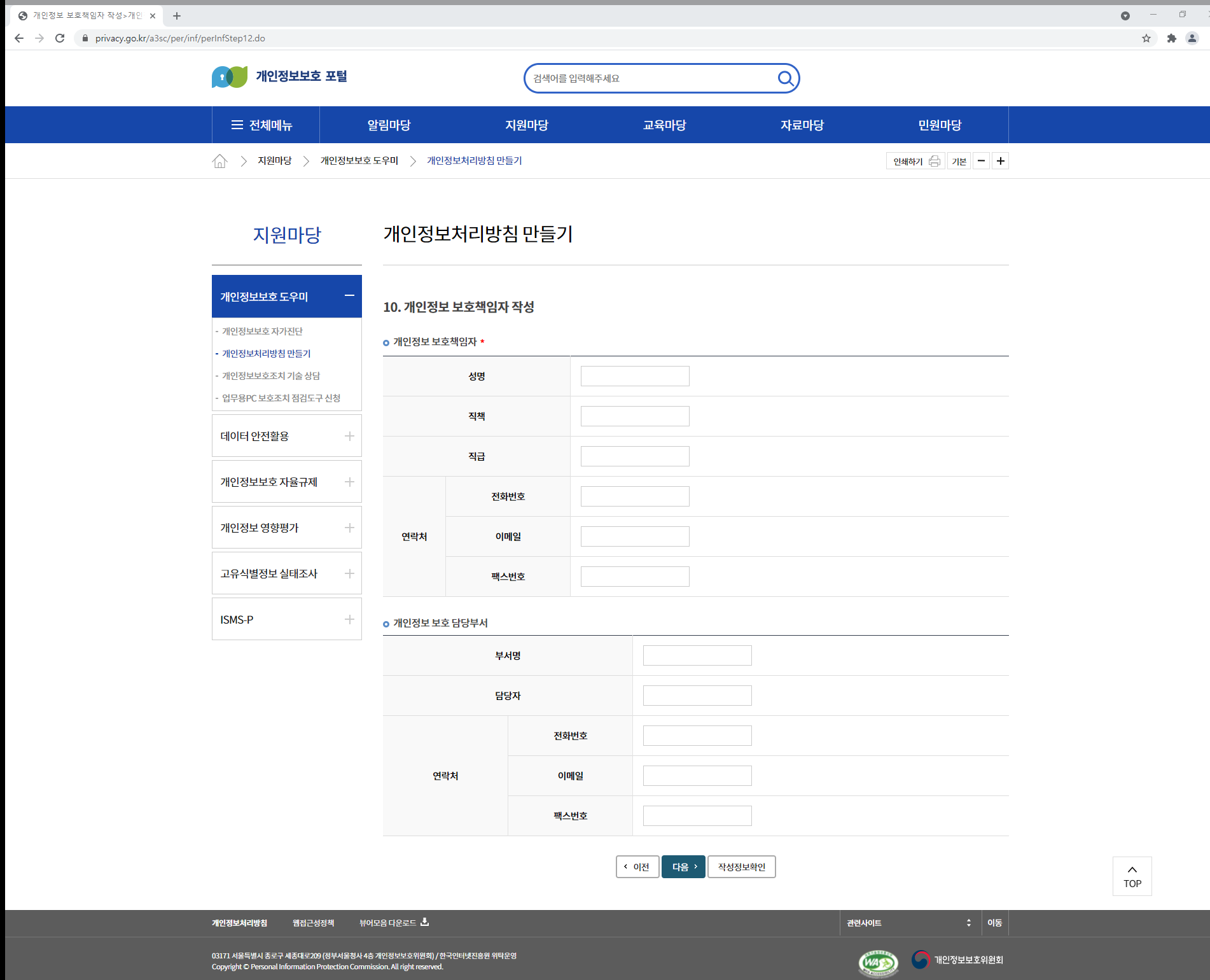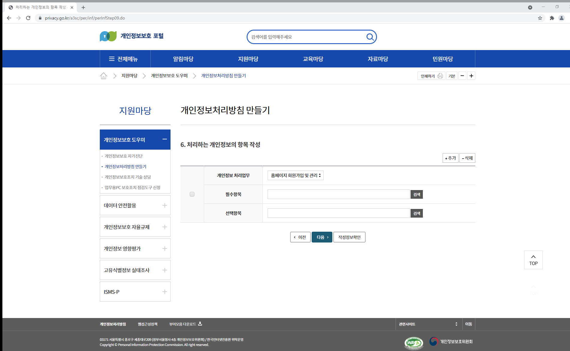 하지만 개인정보보호 포털을 통해서도 작성이 가능합니다.