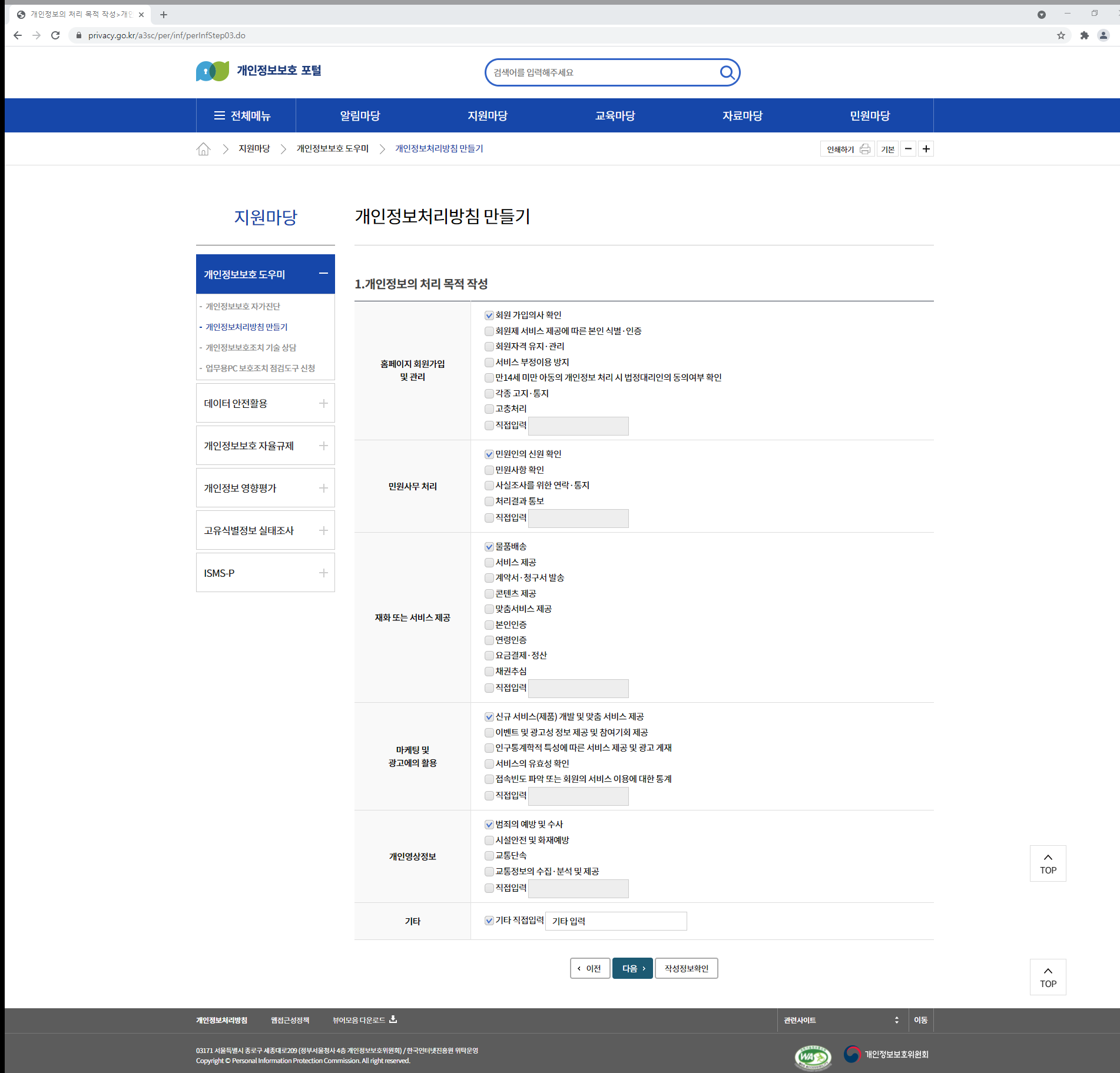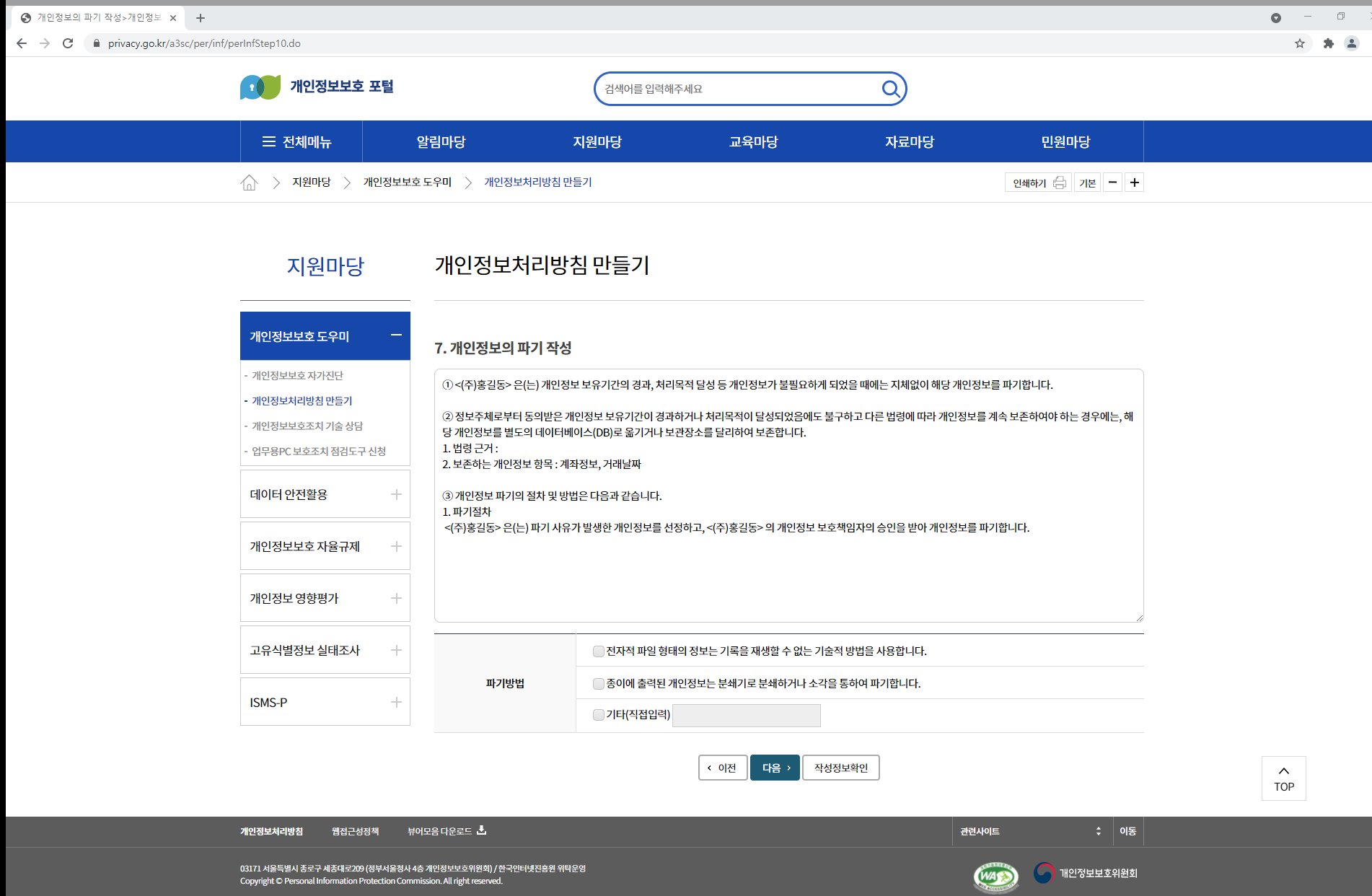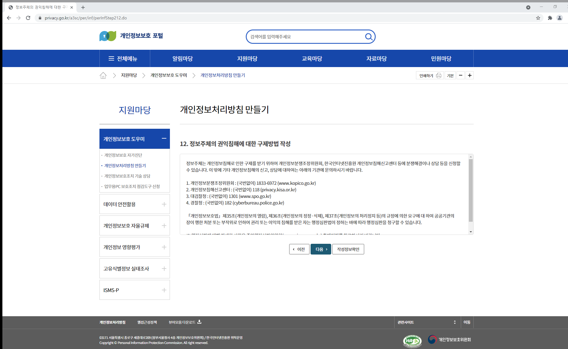 하지만 개인정보보호 포털을 통해서도 작성이 가능합니다.