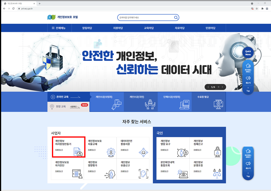 1. 접속 후 개인정보 처리방침 만들기를 클릭합니다.