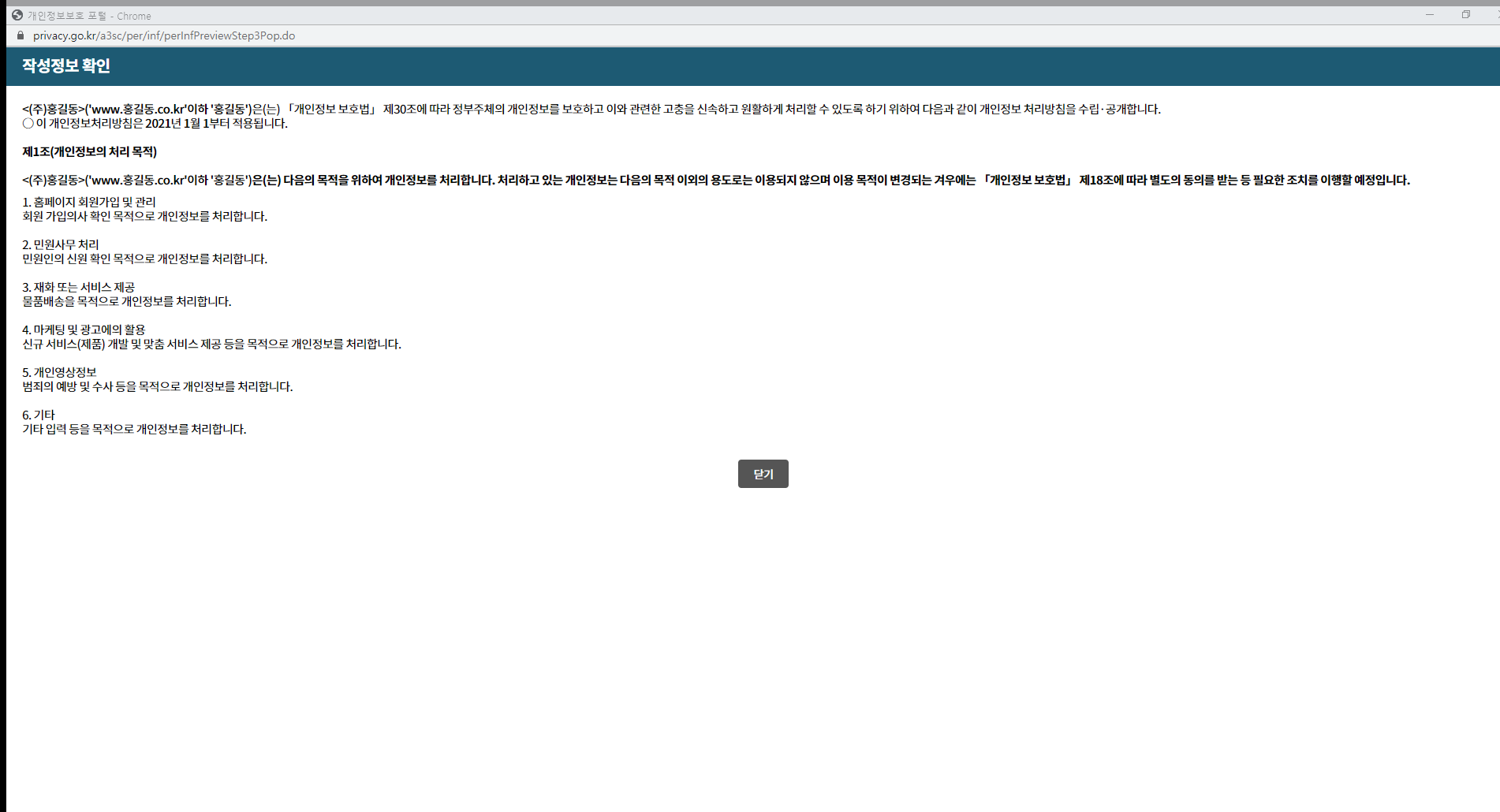 5. 개인정보 처리 목적을 작성합니다.