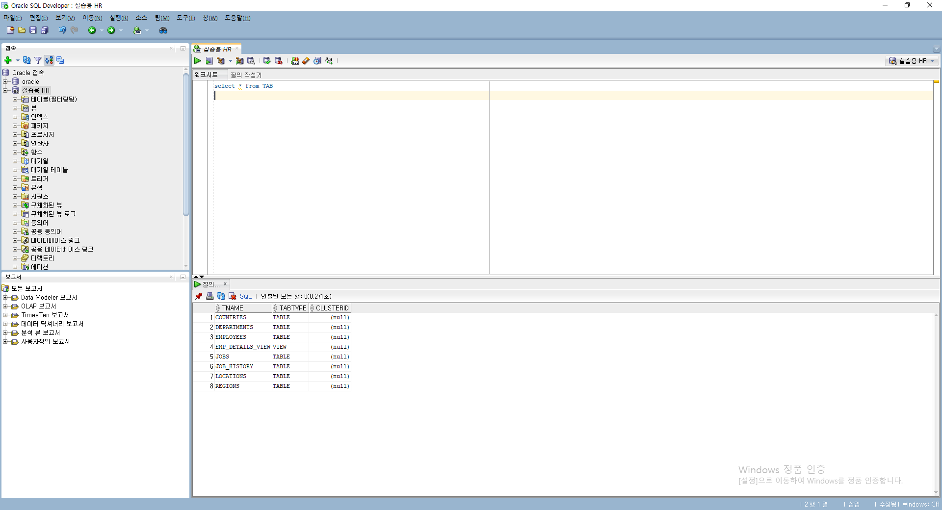 ◆오라클에서 지원하는 데이터 타입의 종류데이터 타입설명CHARsize 크기의 고정 길이 문자 데이터 타입최대 크기 : 2000byte최소크기 : 1 byteVARCHAR2size 크기의 가변 길이 문자 데이터 타입최대 크기 : 2000byte최소크기 : 1 byteNVARCHAR2국가별 문자 집합에 따른 size 크기의 문자 또는 바이트의 가변길이 문자 데이터 타입최대크키 : 4000 byte최소크기 : 1 byteNUMBER정밀도와 스케일로 표현되는 숫자 데이터 타입p : 1 ~ 38s : -84 ~ 127DATE날짜 형식을 저장하기 위한 데이터 타입ROWID테이블내 행의 고유 주소를 가지는 64진수 문자 타입행당 6 바이트(제한된 ROWID) 또는 10 바이트(확장된 ROWID)BLOB대용량의 바이너..